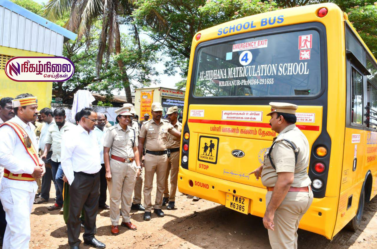 மயிலாடுதுறை மாவட்டத்தில் உள்ள தனியார் பள்ளிகளின் வாகனங்களில் செல்லும் மாணவர்களின் பாதுகாப்பை உறுதி செய்யும் வகையில் பள்ளி வாகனங்கள் செயல்திறன் குறித்து மயிலாடுதுறை அருகே லட்சுமிபுரத்தில் உள்ள தனியார் பள்ளி மைதானத்தில் அதிகாரிகள் குழுவினர் கூட்டாய்வு மேற்கொண்டனர். மயிலாடுதுறை மாவட்ட ஆட்சியர் மகாபாரதி தலைமையில் மாவட்ட காவல் கண்காணிப்பாளர் மீனா, கோட்டாட்சியர் யுரேகா மாவட்ட முதன்மை கல்வி அலுவலர் அம்பிகாபதி, மயிலாடுதுறை வட்டார போக்குவரத்து அலுவலர் சரவணபவன் மற்றும் மோட்டார் வாகன ஆய்வாளர்கள் ராம்குமார் விஸ்வநாதன் காவல்துறை தீயணைப்பு துறை அதிகாரிகள் அடங்கிய கூட்டாய்வு குழுவினர் ஆய்வு மேற்கொண்டனர்.